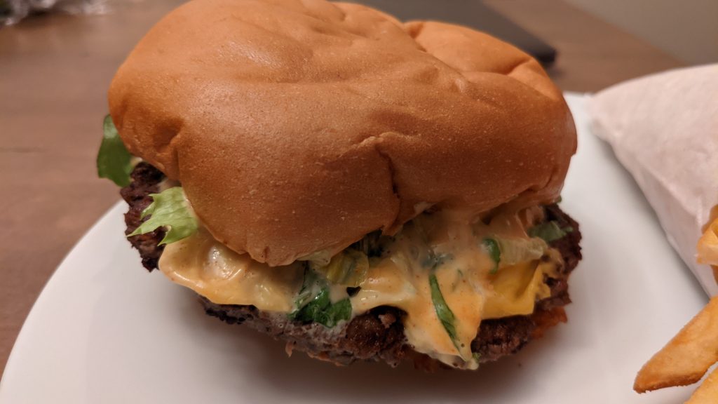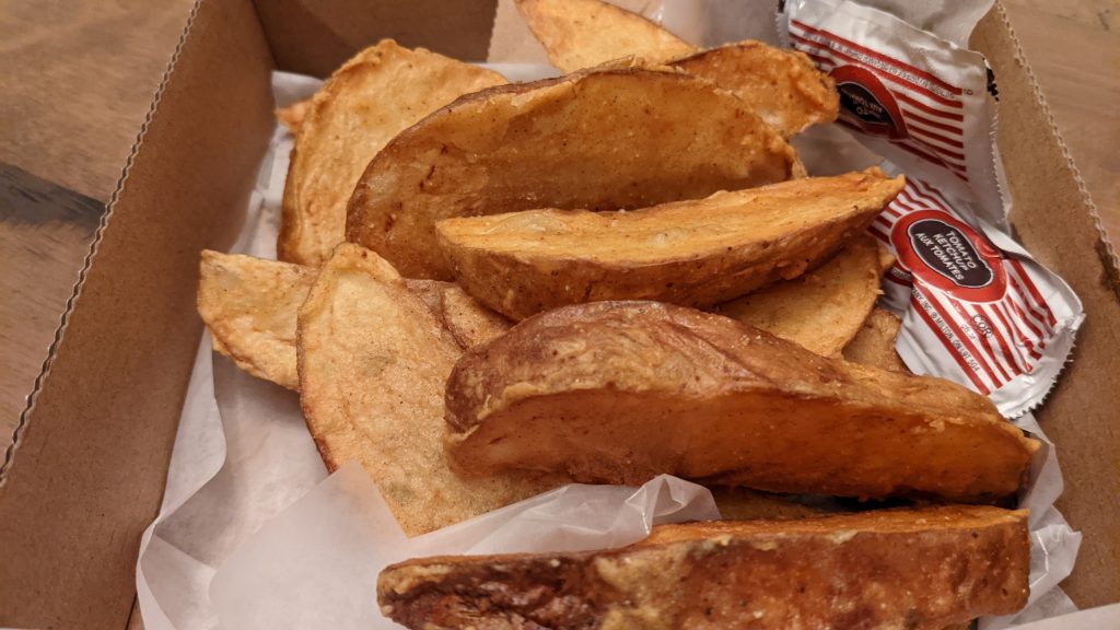 The bigger issue is the price. This may be premium fast food, but the price is still high. We paid $36 for the food you see above – dinner for two. A basic cheeseburger combo is $14 before tax. That’s a big ask for a takeout burger joint in the middle of Harewood. Furthermore, there is a mandatory 12% tip added to all orders. This sticks in our craw a bit as all you can do is pick up your food at the counter. There isn’t really any service per se. Do you tip at McDonalds too?