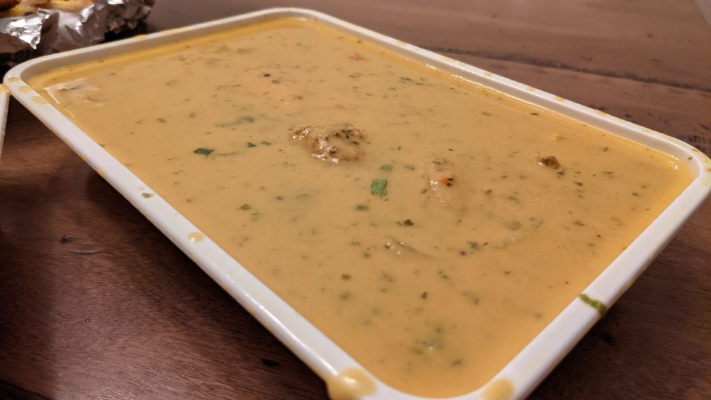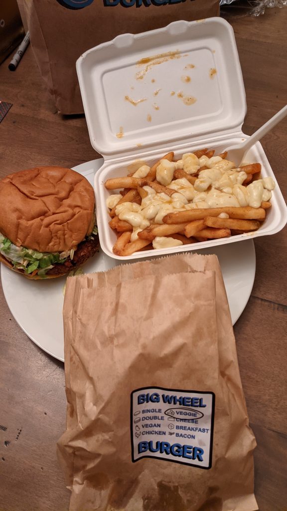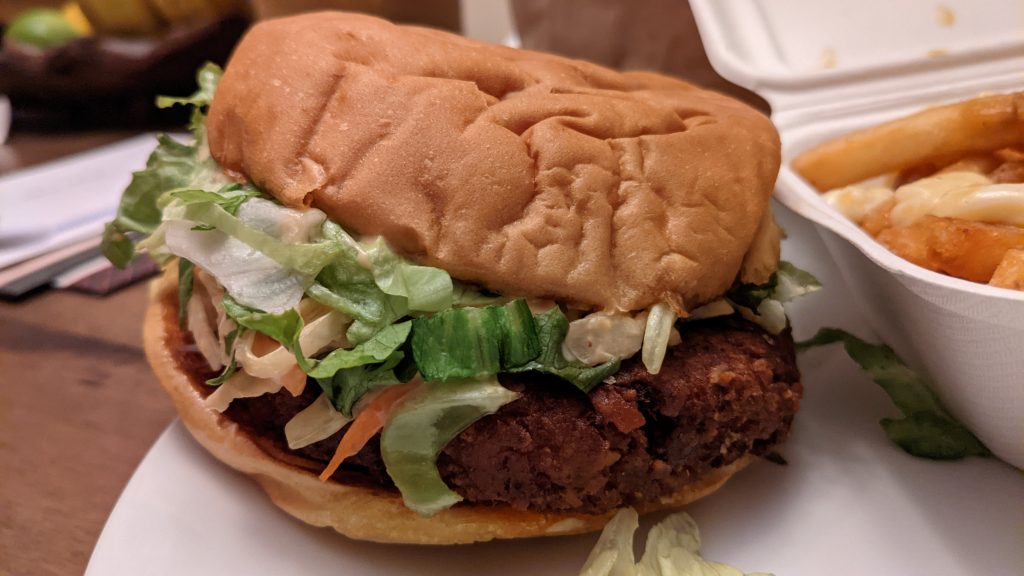 All of the food was well cooked and tasty. The cheeseburger was flame-broiled and tasted like it came from your uncle’s barbeque. The veggie burger was crispy and had a bit of spicy kick, which we loved. The fries and poutine were also excellent – particularly the bare fries – though the poutine should have been hotter. You can read how the poutine compares to others in our poutine project. We really love this food and want to eat it again.