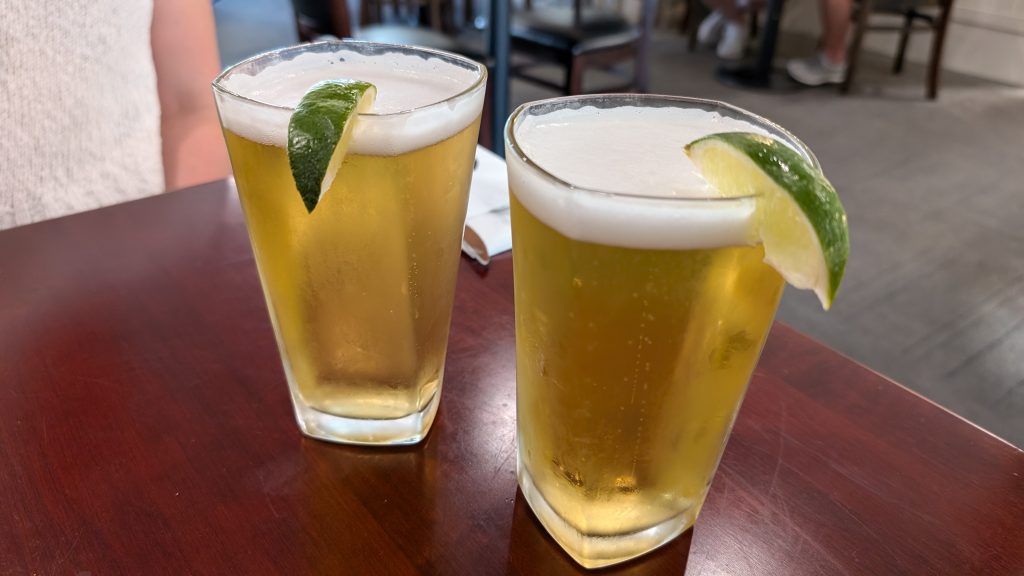 We really liked what we saw on offer and it was fun to agonize over what to order. We ultimately decided to share the cauliflower bites to start, followed by the smoked brisket dinner for him and the wild salmon bowl for her. Oh and a couple of frosty brews of course – we were eating fried food tonight after all! We love Hoyne and were happy to see a couple of their taps available.