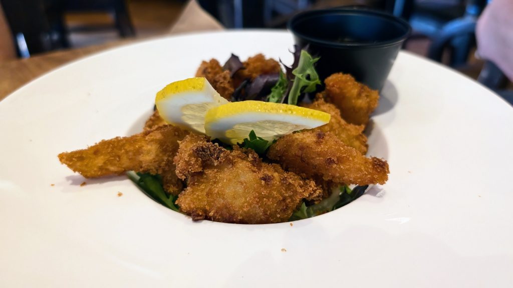 The menus we were handed for dinner were hard to navigate. The descriptions were so minimal that we really didn’t understand what half of the entrees even were. Just what does “seafood inspired” mean, anyway? Is it actual seafood, or just “inspired”? Yeesh. Also, we weren’t sure if the Piper’s was trying to be a fish and chips shop, a Korean BBQ, or a fancy seafood restaurant. The menu covered all of those. More bad news came when we learned that the restaurant was not yet licensed, so our options for drinks with dinner were basically water, coffee, or fancy juice.