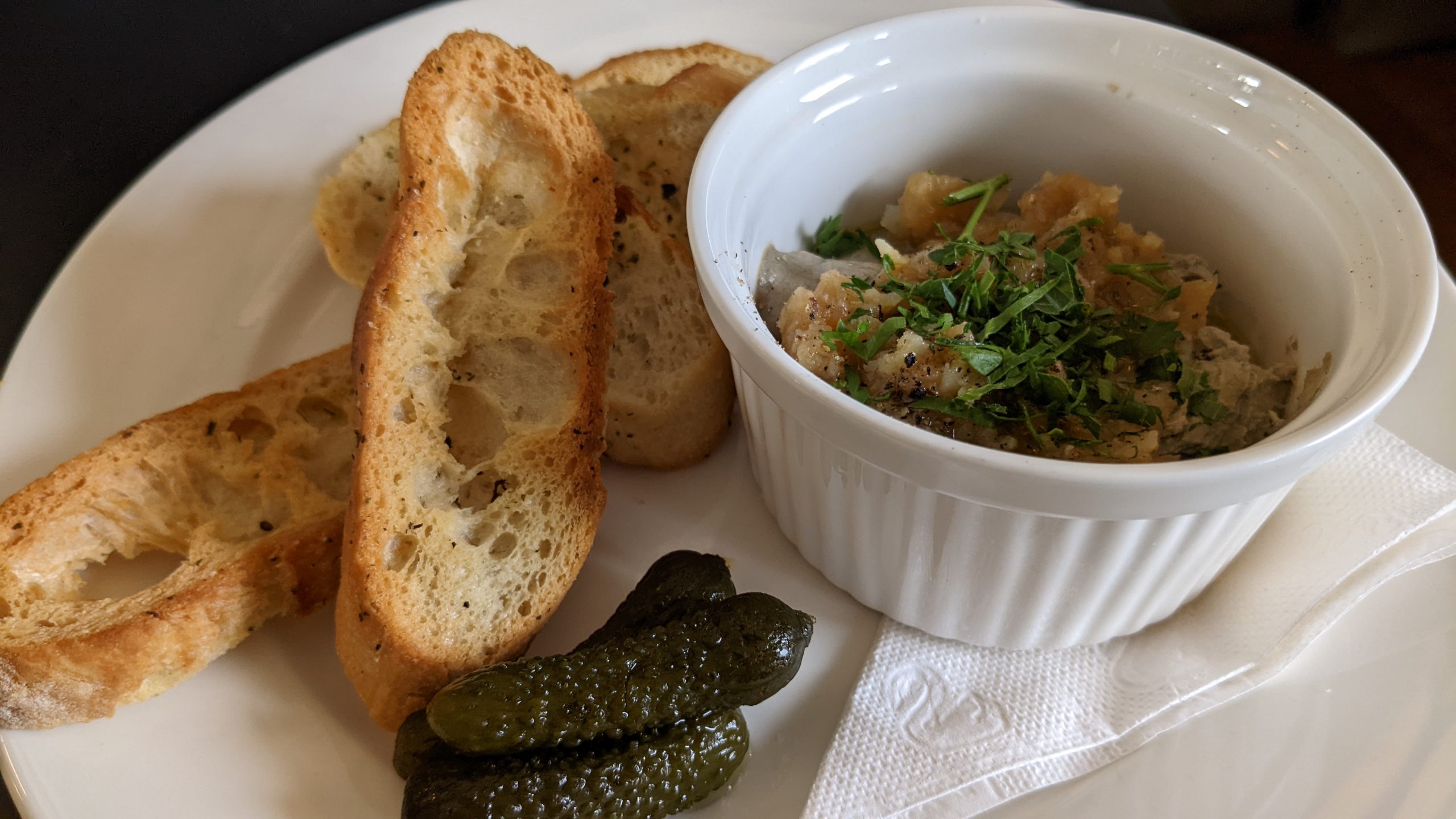Black Rabbit offers a la carte ordering, but we were also offered a prix fixe (set menu) option as well. Longtime readers will know we cannot resist that. Virtually all the menu items are traditional French cuisine, although with some curious omissions, like French onion soup, bouillabaisse, or what is often the main attraction, beef bourguignon. Still, lots to choose from here.